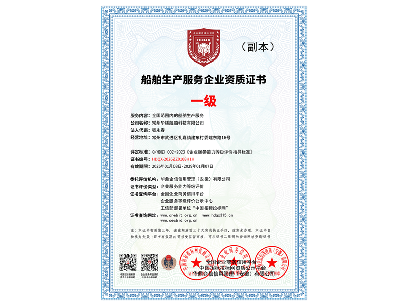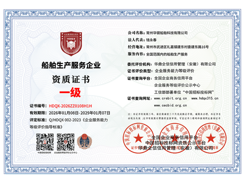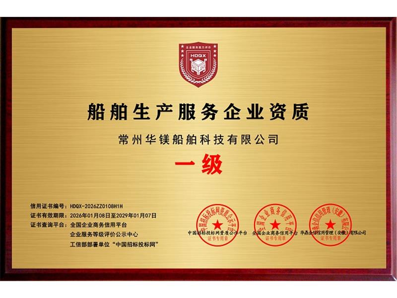 船舶生產(chǎn)服務企業(yè)資質(zhì) 一級